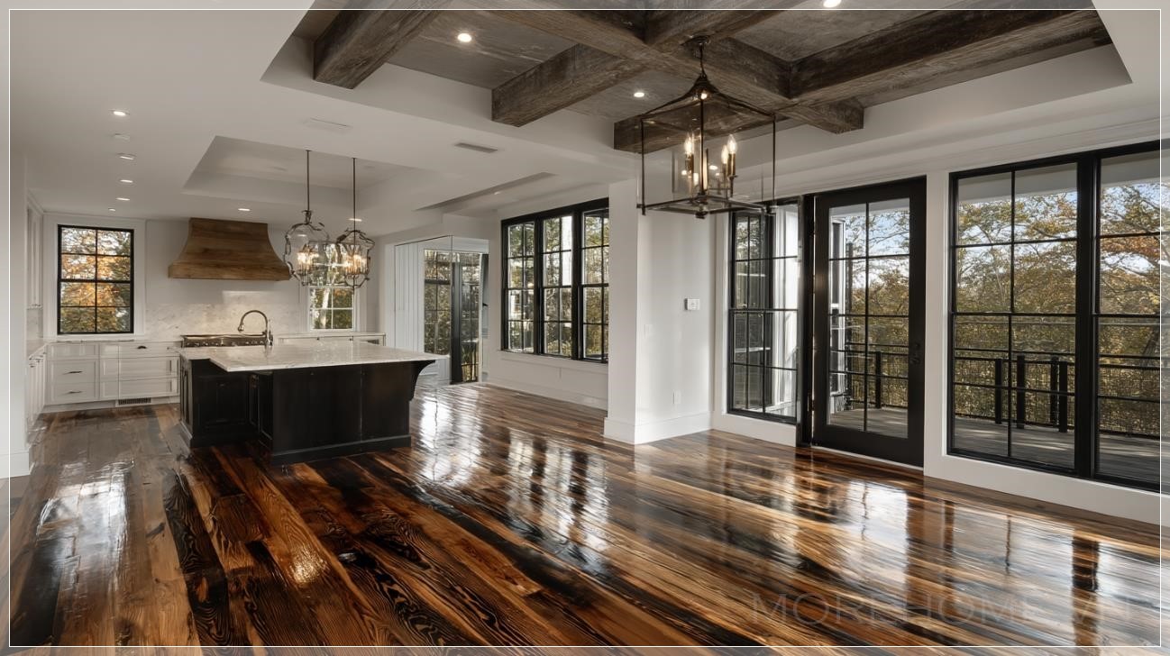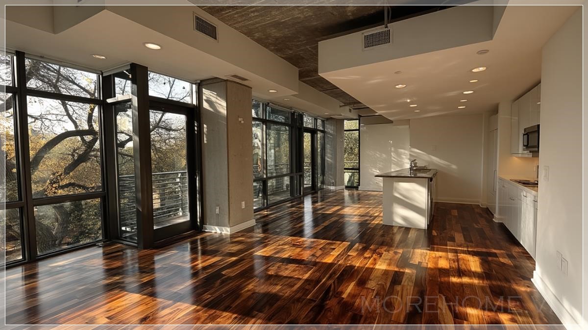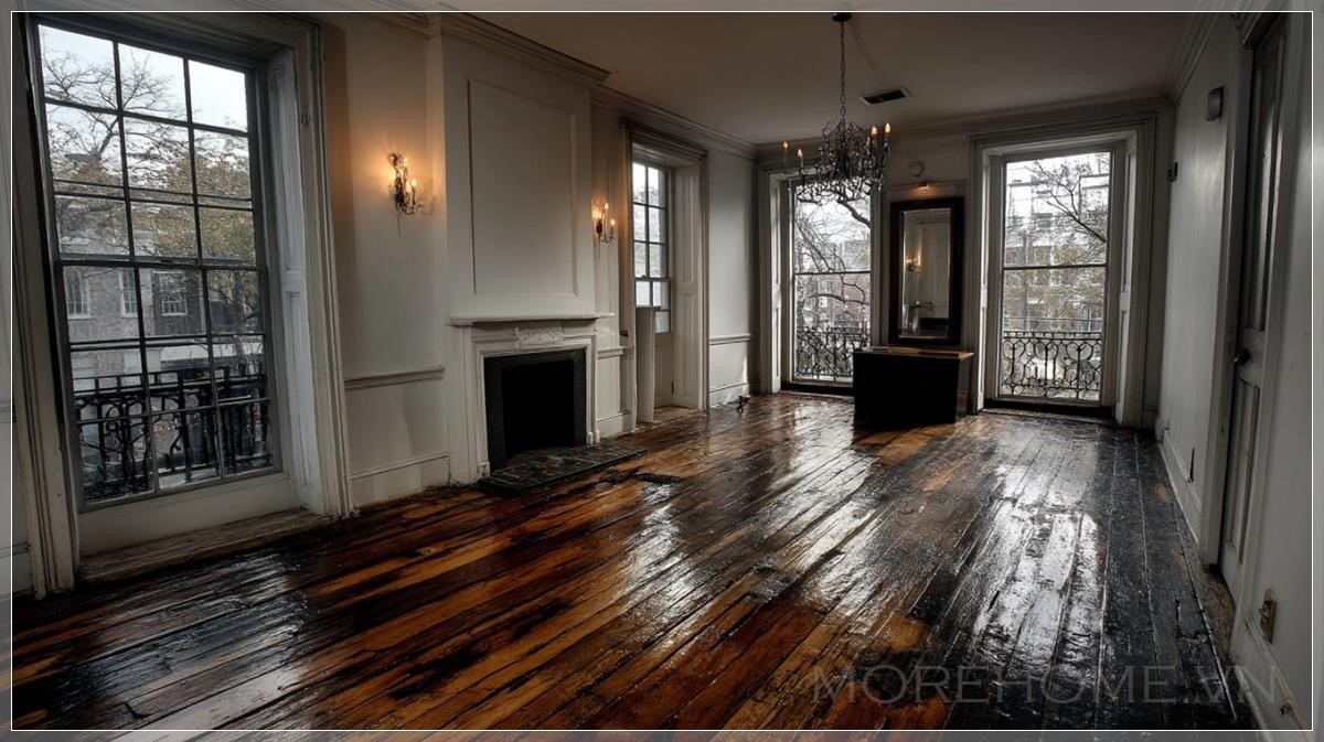 Tường trắng và sàn gỗ, không gian thanh thoát và tinh tế. Sự kết hợp giữa màu trắng sáng và chất liệu gỗ tự nhiên tạo nên một bầu không khí ấm cúng và nhẹ nhàng. Ánh sáng tự nhiên tràn ngập phòng, chiếu rọi lên bề mặt sàn gỗ, làm nổi bật các vân gỗ mộc mạc. Không gian rộng rãi và thoáng đãng, phù hợp với những thiết kế nội thất tối giản hoặc hiện đại.
