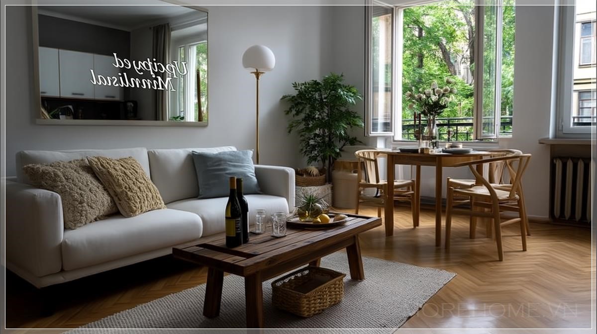 Ánh sáng tự nhiên tràn ngập căn hộ nhỏ, tạo nên một bức tranh sống động của sự hài hòa và thanh bình. Những tia nắng vàng nhảy múa trên sàn gỗ tái chế, phản chiếu lên những bức tường màu beige nhẹ nhàng, tạo nên một không gian ấm áp và chào đón mà không cần đến những món đồ trang trí cầu kỳ hay đắt tiền.