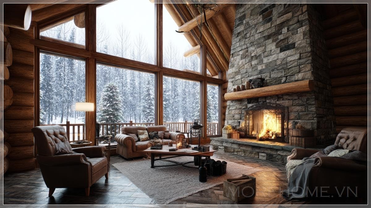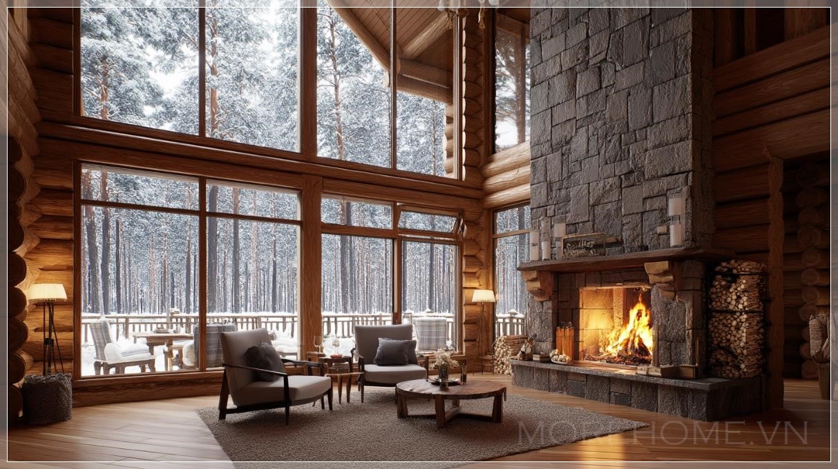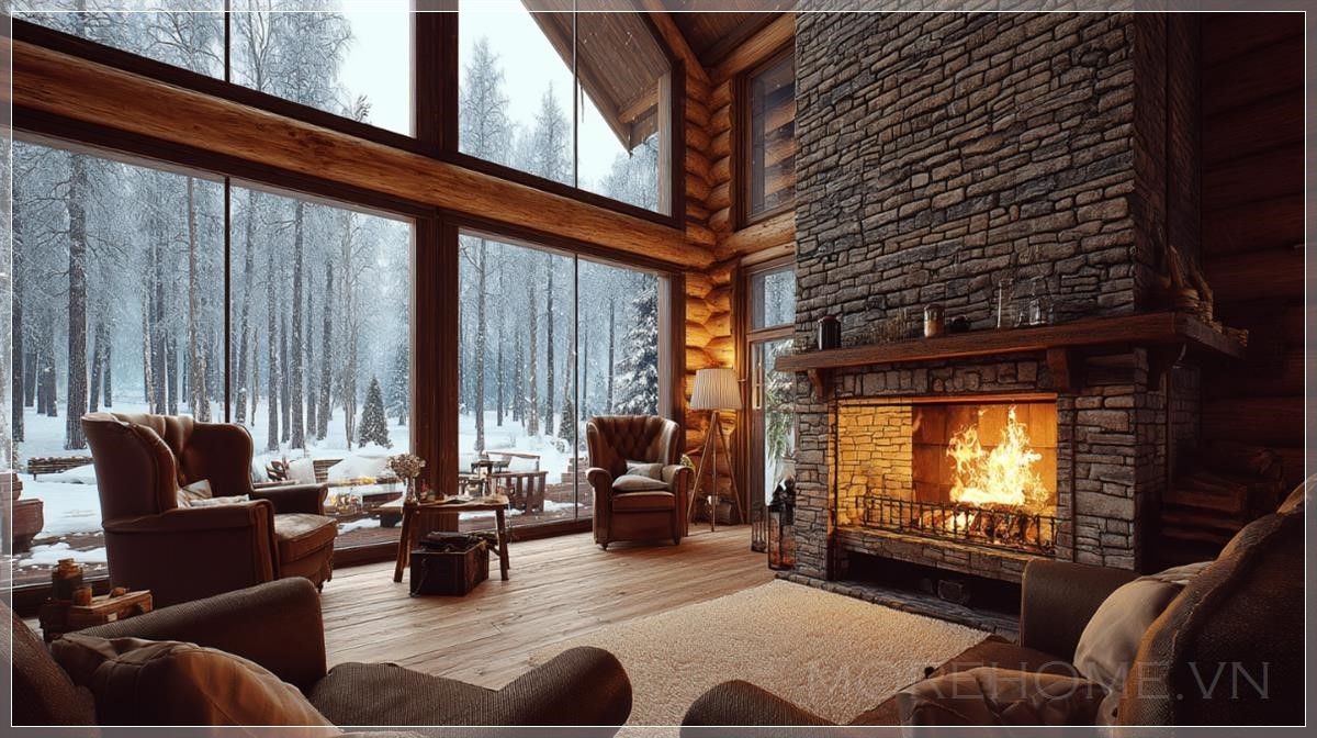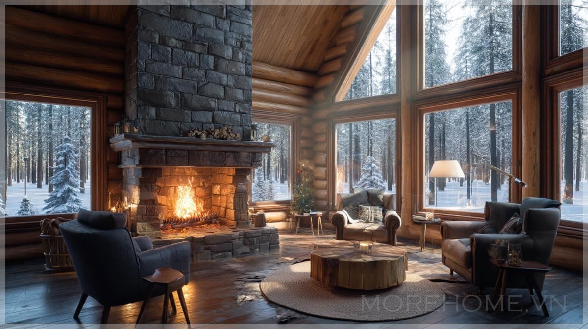 Sự tương phản giữa không gian ấm áp bên trong và khung cảnh lạnh giá của mùa đông bên ngoài tạo nên cảm giác an toàn kỳ diệu. Mọi lo âu của cuộc sống dường như được để lại sau cánh cửa cabin, thay vào đó là cảm giác an yên khó tả. Từng thớ gỗ trên tường, từng viên đá tự nhiên của lò sưởi đều mang đến cảm giác gắn kết với thiên nhiên, mặc dù bạn đang được bao bọc trong không gian ấm áp, tách biệt với cái lạnh bên ngoài.