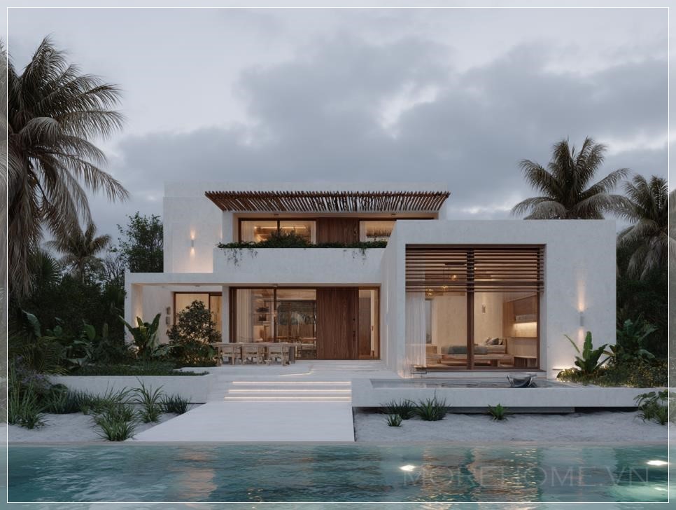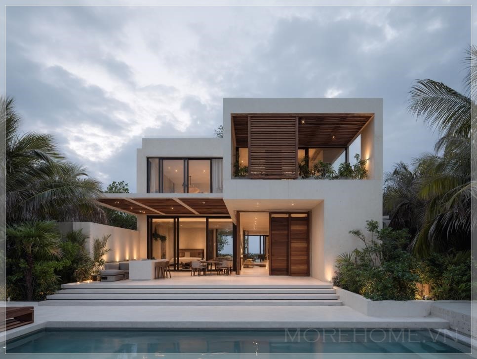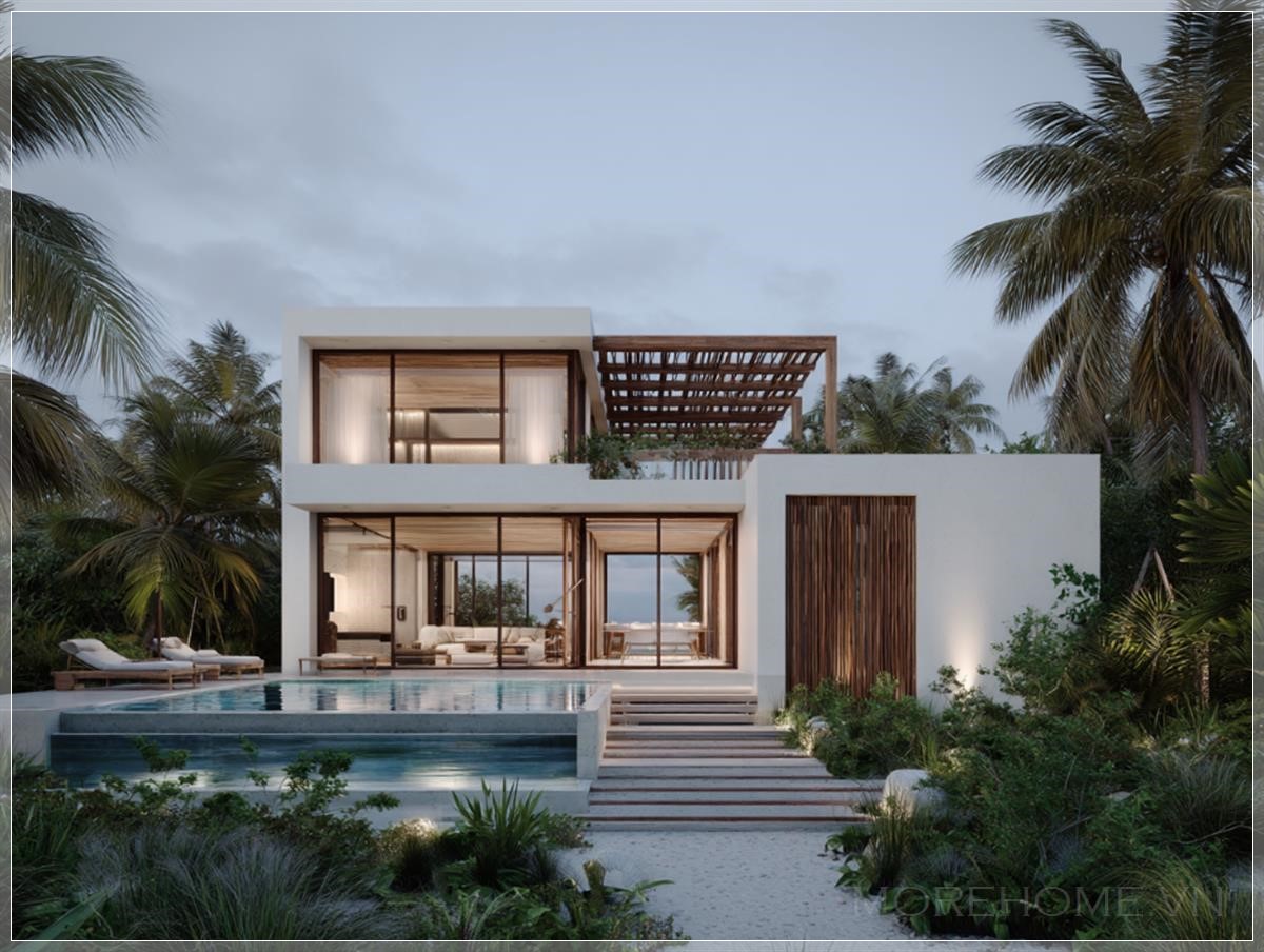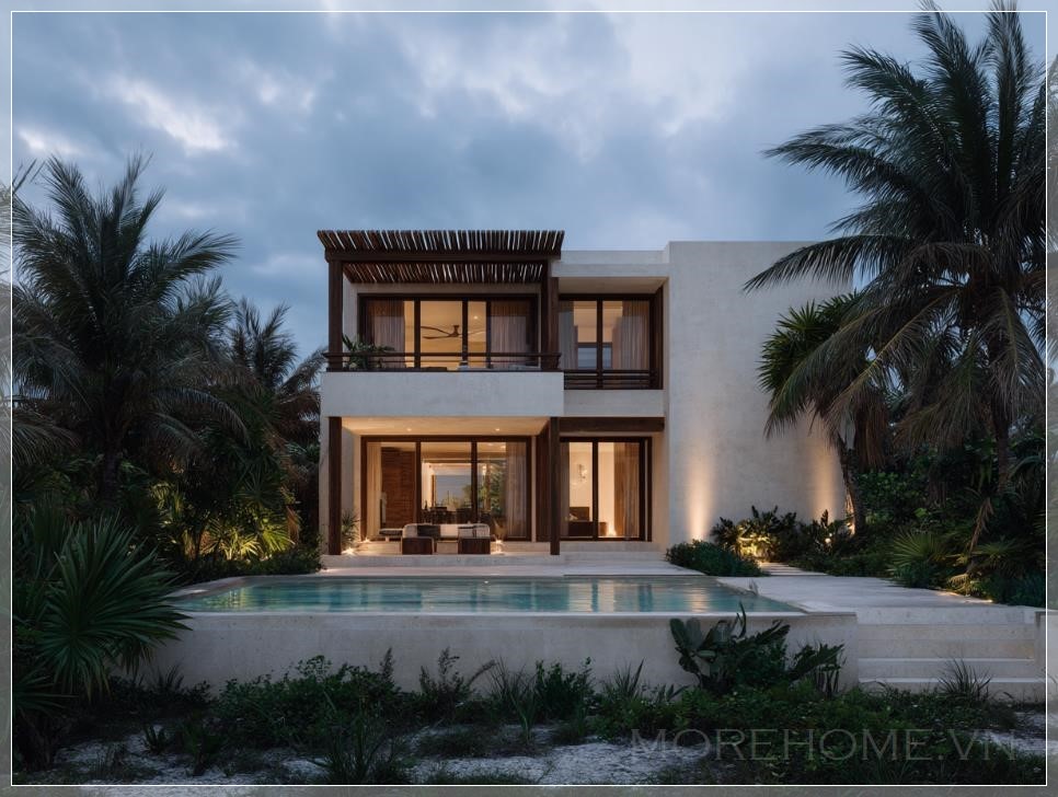 Khi ánh hoàng hôn cuối ngày nhẹ nhàng vuốt ve những bức tường Chukum mịn màng, căn biệt thự hai tầng này không chỉ đơn thuần là một công trình kiến trúc, mà còn là bản tình ca êm đềm giữa con người và thiên nhiên nhiệt đới Mexico. Tọa lạc tại vùng đất thiêng liêng Tulum, Quintana Roo, ngôi nhà này như một viên ngọc quý ẩn mình giữa rừng cọ xanh mướt và làn nước biển trong vắt.