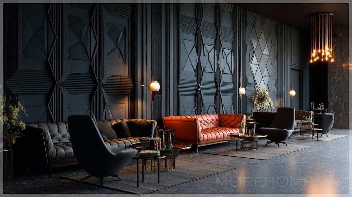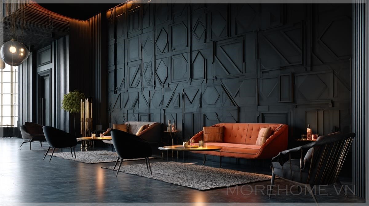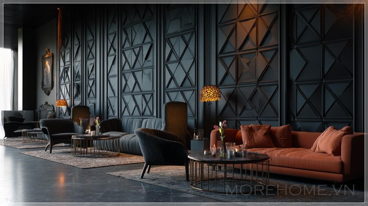 Ánh sáng trong VIP lounge được xử lý như một nghệ thuật riêng biệt. Thay vì ánh sáng chói chang hay quá mờ ảo, không gian này sử dụng một hệ thống chiếu sáng nhiều lớp tinh vi. Những dải LED ẩn sau các khe rãnh trên tường đen tạo ra một hiệu ứng wash light mờ ảo, trong khi các đèn bàn với chụp đèn bằng lụa mang đến ánh sáng ấm áp cho từng khu vực cá nhân. Sự kết hợp này tạo ra một bầu không khí vừa hiện đại vừa ấm cúng.