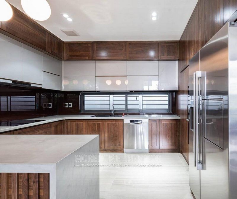 Việc thi công nội thất phòng ăn bằng gỗ tự nhiên cho biệt thự hiện đại Vinhomes Riverside đã được thực hiện.